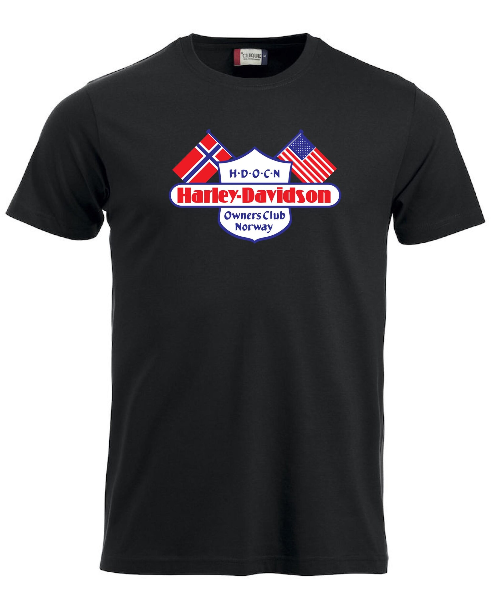 Basic t-shirt i en smalere passform, bånd i nakke, elastan i halsribb og forsterkede sømmer på skuldre. Rundstrikket herremodell og sidesømmer på damemodell.